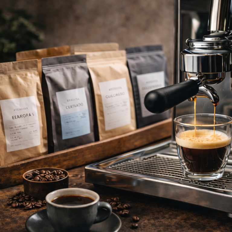 - Siebträgermaschine mit ausgewählter Standardbohne